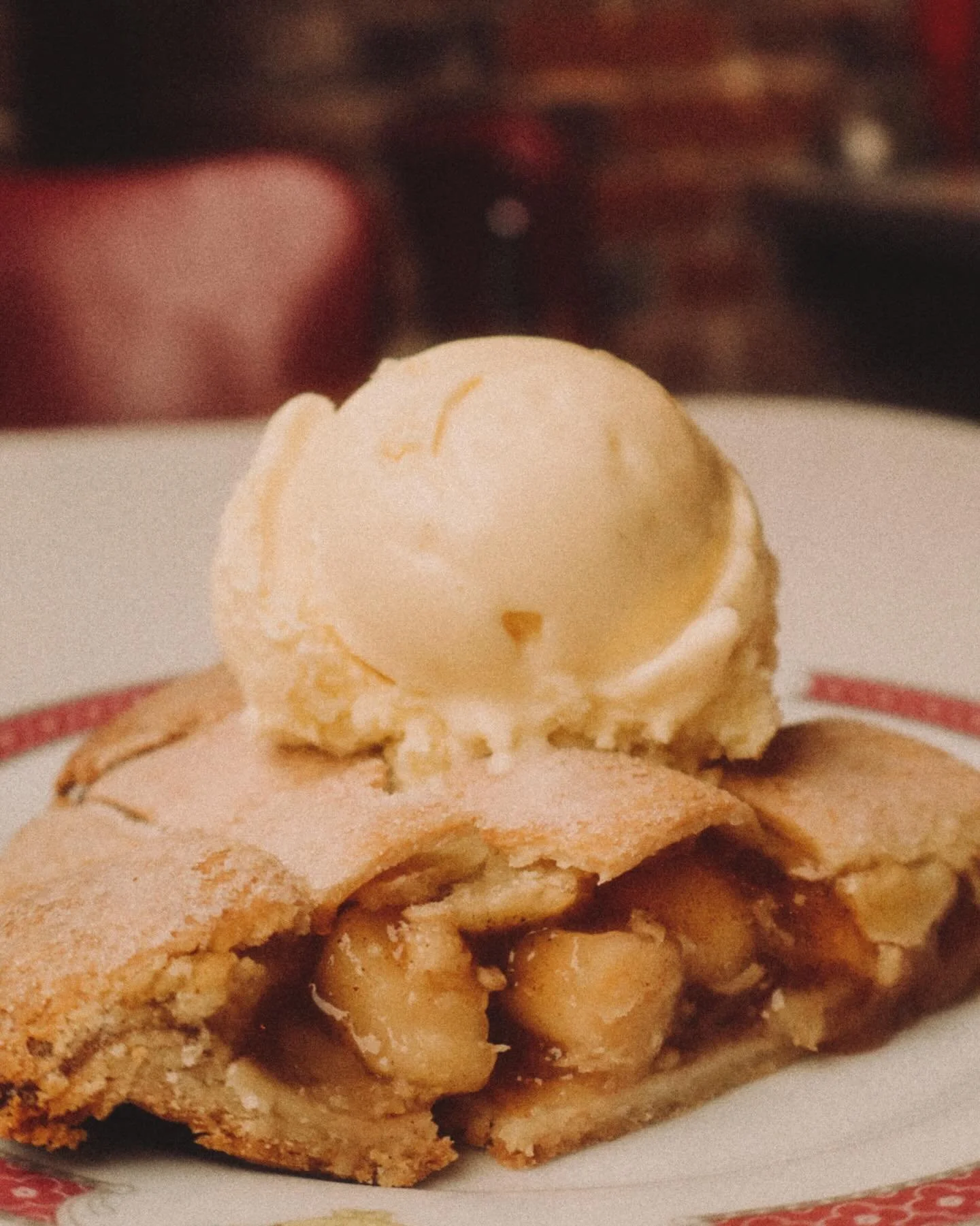 View fullsize ❣️ APPLE PIE. Warm cinnamon & cardamom apple filling. Contrasted by cold & creamy vanilla ice cream. An old-fashioned favourite done right at Aureliana!